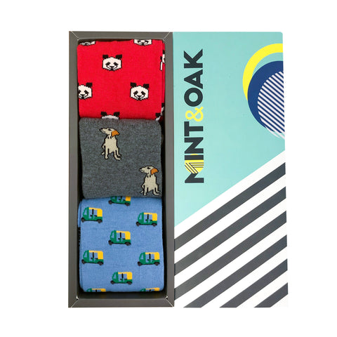 Ribbed Embroidered Christmas Tree Crew Socks For Men
