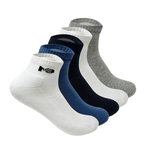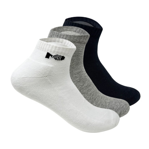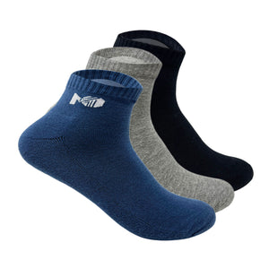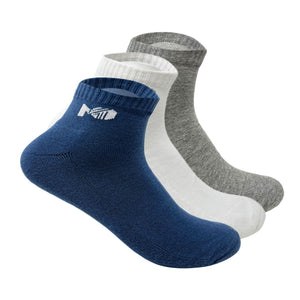 Sports terry Ankle Socks For Men -  Set Of 3 ( White, Grey, Black & Grey Melange )