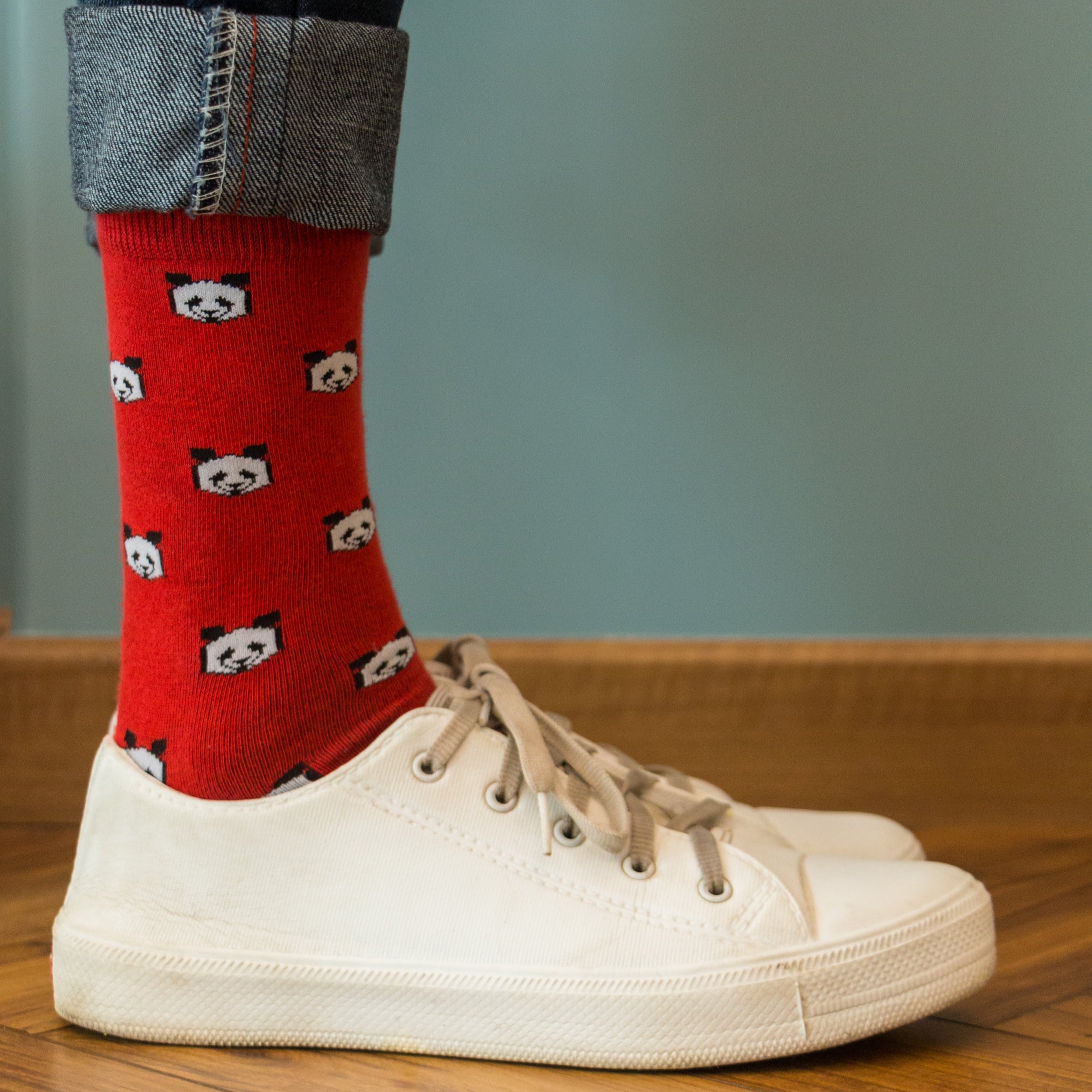 All aboard! Hop your feet up on the table (or find other excuses) to show off these cool panda socks