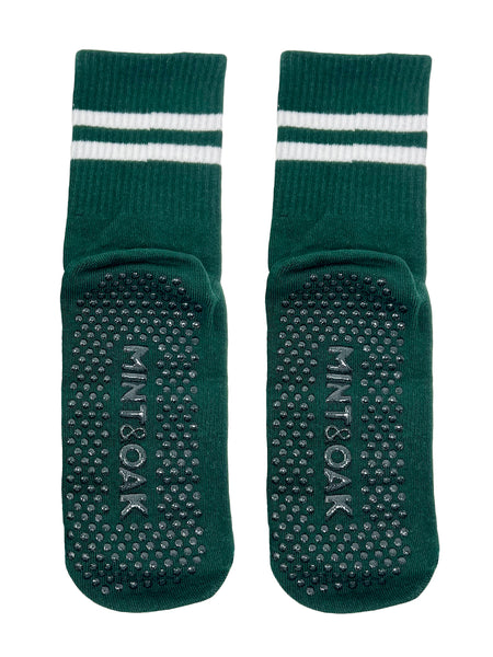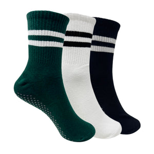 Yoga and Pilates Crew/ Full length Non-Slip Socks for Women - Set of 3 (White, Black, Bottle Green)