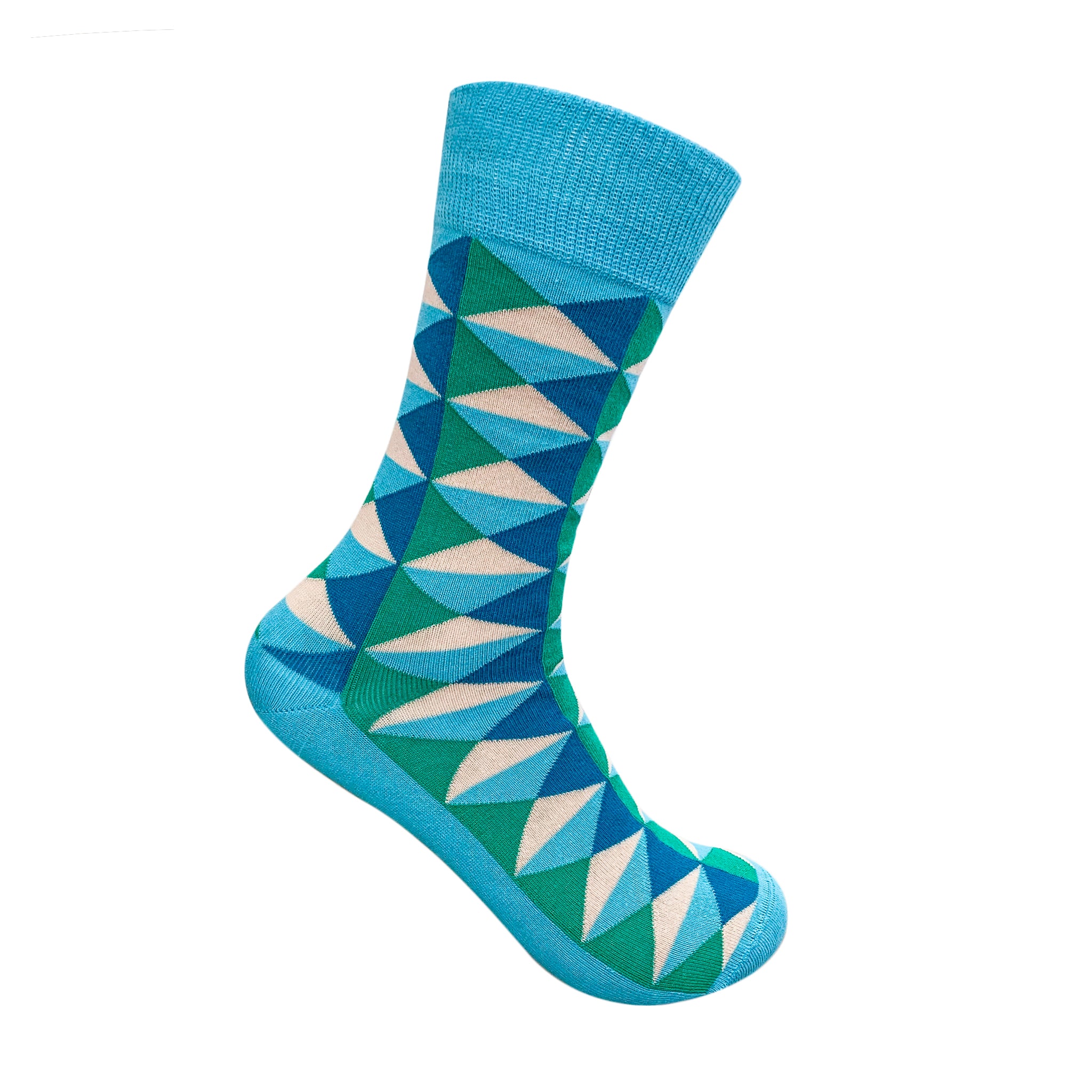 Tones of blue, green and beige combine to make this unique and stylish tessellation print. A fresh take on a classic design, these socks are understated yet bold.